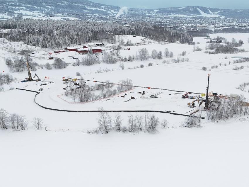 Despite demanding winter conditions, our team continues to demonstrate strong geotechnical expertise, commitment, and close coordination on site. We have successfully completed the installation of 1.9 m diameter piles on the west side of the Gudbrandsdalslågen River – among some of the largest diameter piles executed in Norway - as well as sheet pile boxes on Våløya for the future pile caps. Work is currently ongoing on the steel core piles with diameters of up to 510 mm and to depths of up to 85 meters, forming the foundations for Axes 1 and 5–10, with completion expected in spring 2026.